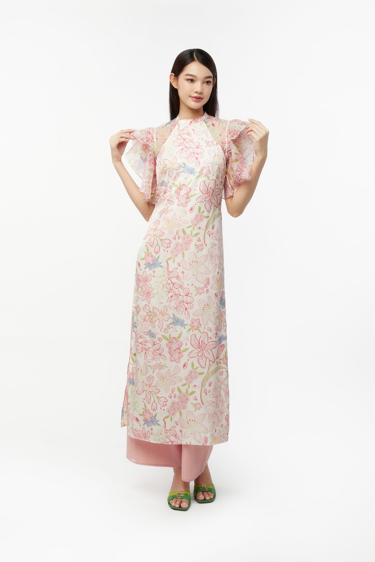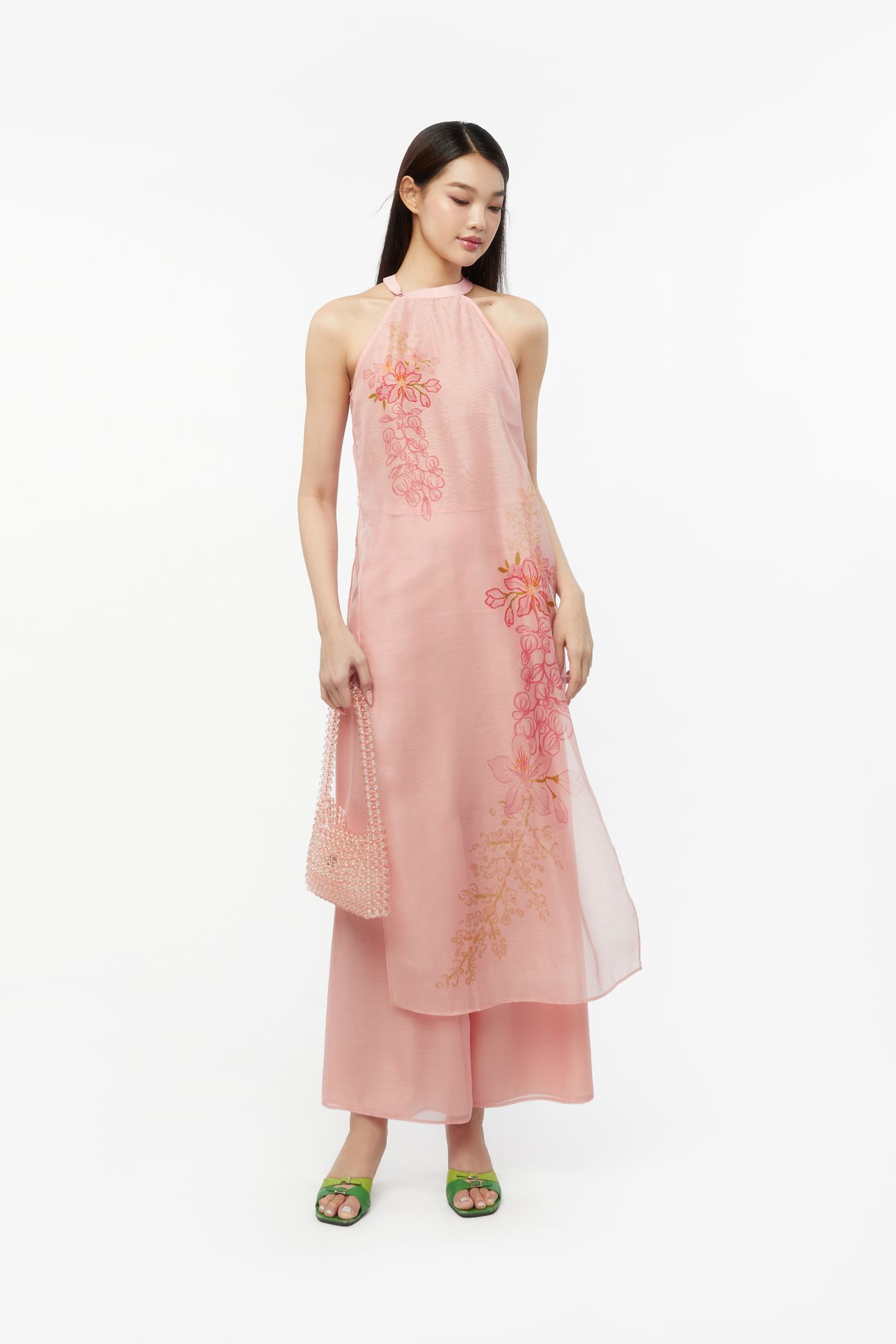 ÁO DÀI 12 MÙA HOA - ORGANZA HỒNG ĐÀO